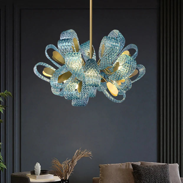 "Majestic Blue Chandelier by Manara radiates opulence and elegance. Its stunning blue crystals and intricate design create a dazzling focal point, casting a mesmerizing glow. This exquisite chandelier transforms any space into a regal sanctuary, adding a touch of sophistication and timeless beauty."